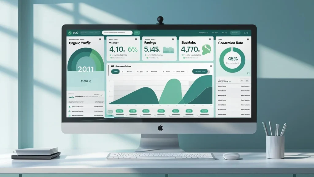 We track performance using tools like Google Search Console and GA4. Key metrics include keyword position tracking, organic traffic growth, bounce rates, and conversions. Our monthly reports are clear, actionable, and focused on ROI.